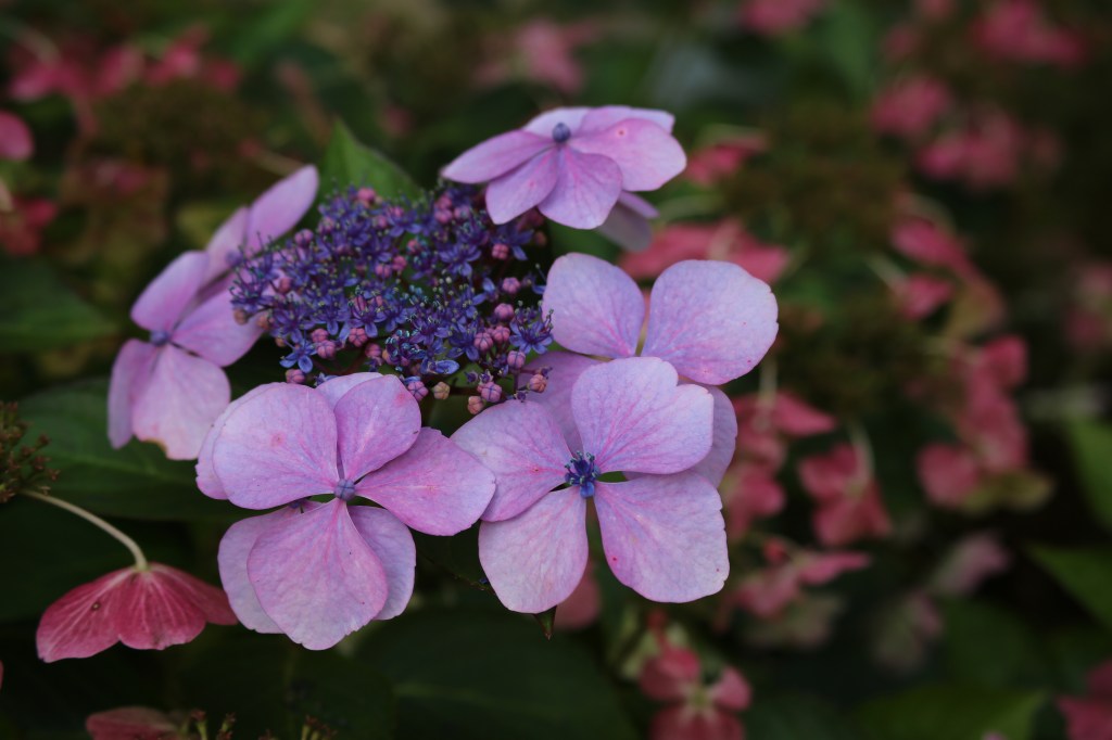L’été au jardin est l’occasion des floraisons de quelques fleurs adaptées à la terre acide : hydrangéas (dont les hortensias sont une espèce : hydrangea macrophylla), hémérocalles. Les nymphéas donnent aussi à voir leurs magnifiques fleurs.