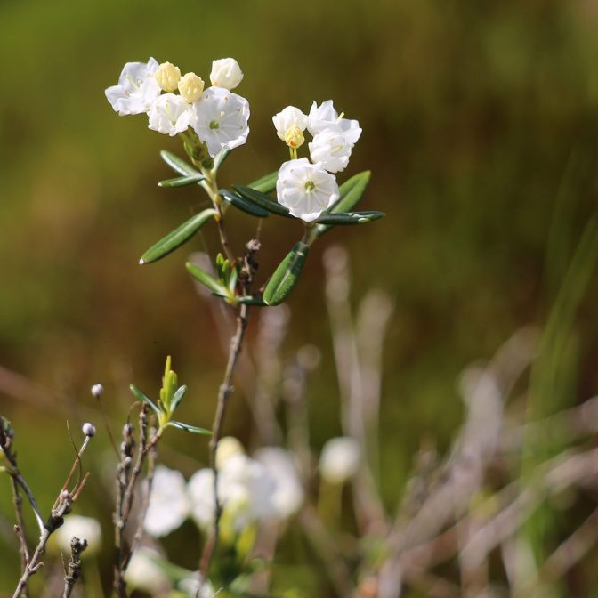 - Kalmia cuneata Michx. espèce voisine de Kalmia hirsuta, à la floraison blanche. Elle s’acclimate difficilement à Gondremer.